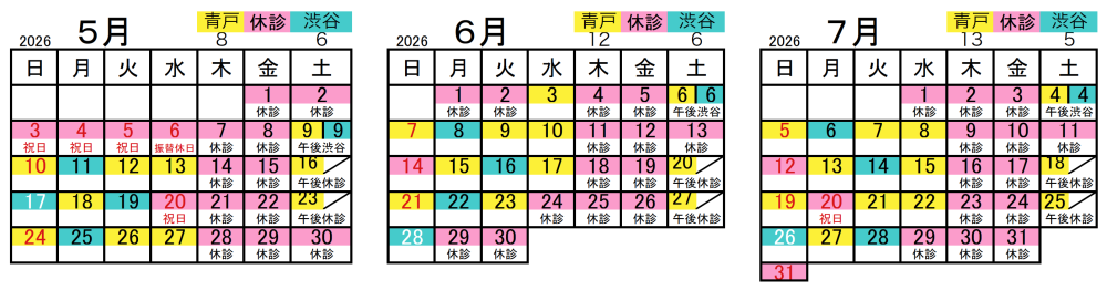 休診日は赤色で表示されています。